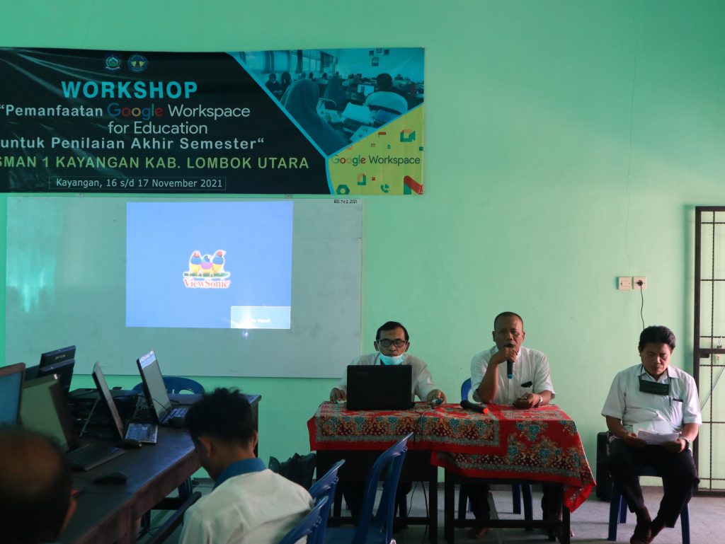Output dari workshop ini tak hanya melatih guru dalam menyiapakan materi pembelajaran. Akan tetapi, guru juga dilatih memanfaatkan berbagai fitur Google Workspace For Education untuk penilaian, baik peniliaian harian maupun Penilaian Akhir Semester.Workshop tersebut berlangsung selama dua hari, yakni mulai Selasa, 16 November sampai dengan Rabu 17 November 2021. Workshop yang dibuka oleh Kepala Cabang Dinas Dikbud Lombok Utara tersebut diikuti dengan antusias oleh guru SMAN 1 Kayangan sebagaimana harapan Kepala Sekolah saat memberikan sambutan di hari pertama. Beliau menekankan agar pelatihan ini tidak sekadar sebagai formalitas. Akan tetapi bagaimana pelatihan ini membuahkan hasil berupa kemampuan guru dalam memanfaatkan fitur Google Workspace for Education untuk mengelola pembelajaran digital. Sehingga model pembelajaran blended learning dapat berjalan dengan baik dalam rangka memberikan pelayanan terbaik bagi peserta didik.