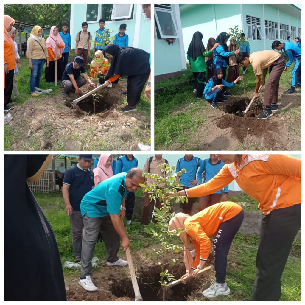 Giat DWP Unit SMAN 1 Kayangan melaksanakan kegiatan penghijauan di area Sekolah.